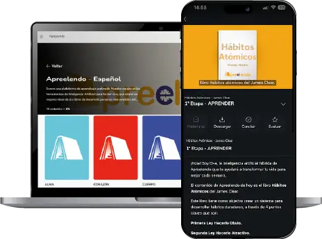 Apreelendo es una plataforma de aprendizaje acelerado. Nuestro equipo utiliza herramientas de Inteligencia Artificial para crear e-la, que extrae las mejores ideas de los libros de desarrollo personal más vendidos del mundo y las comprime en el Método Apreelendo.